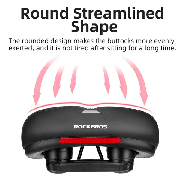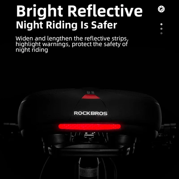 Upgrade your ride comfort with the Rockbros AQ-6090R Bicycle Saddle, the shockproof, wide, and reflective bike seat for commuters, mountain bikers, road cyclists, and gravel riders seeking soft cushioning, pressure relief, waterproof durability, and great value. This oversized ergonomic saddle features a rainproof PU leather surface with soft memory sponge padding and shock absorption for all-day comfort on bumpy roads or trails, plus a central hollow-out design to reduce hip pressure and prevent numbness during long rides. The wide shape (approximately 26x22cm or 10.2×8.7 inches) provides ample support for buttocks and even weight distribution, while the reflective strips enhance low-light visibility for safer commuting or evening rides. Durable steel rails ensure secure installation on most seatposts, and the streamlined, low-profile design looks great while resisting splashes and easy to clean. Weighing around 618g, it’s a sturdy yet comfortable replacement for stock saddles on cruisers, MTBs, hybrids, or fitness bikes. More than just a seat—it’s your affordable, shock-absorbing companion for pain-free kilometers, better endurance, and added safety.